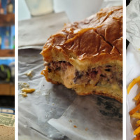 1/4 lb. Black Angus - Cheez Whiz & Swiss American - Grilled Onion- Pickle on a toasted brioche bun! World Famous!